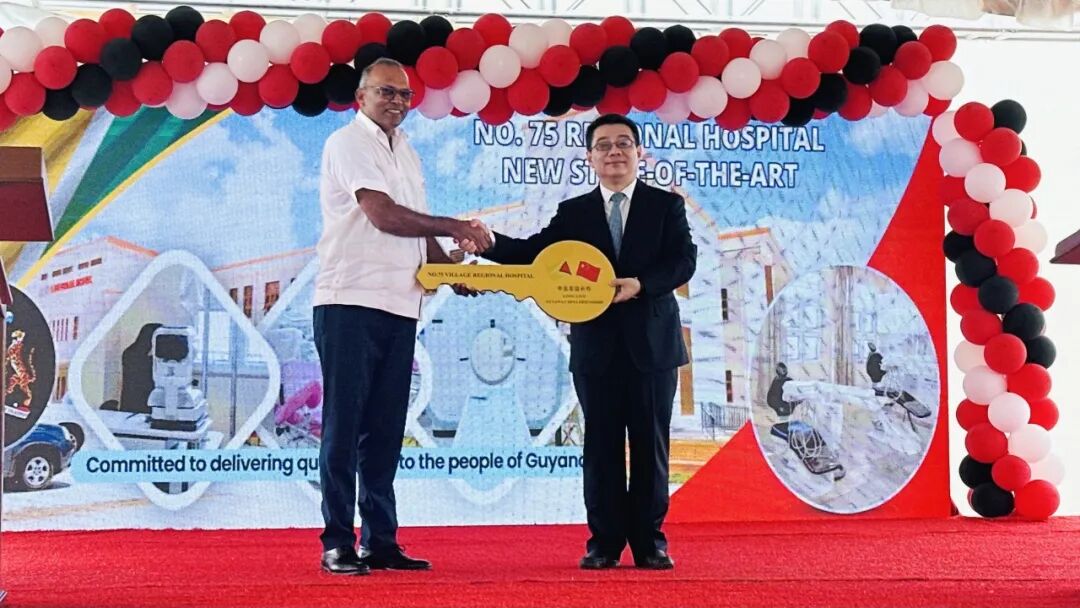 閆海祿副總經(jīng)理代表中工國際將象征醫(yī)院正式移交的金鑰匙親手交予安東尼部長。這把金鑰匙不僅是醫(yī)院運(yùn)營權(quán)的象征,更是搭建中圭合作橋梁的見證。他在致辭中誠摯地感謝圭亞那衛(wèi)生部及各級(jí)政府、中國駐圭亞那大使館、中國信保、中國建設(shè)銀行以及所有合作伙伴在項(xiàng)目實(shí)施過程中給予的大力支持和幫助。該醫(yī)院群項(xiàng)目充分體現(xiàn)了公司協(xié)同共贏理念——通過整合國內(nèi)外優(yōu)質(zhì)資源,構(gòu)建跨區(qū)域、跨領(lǐng)域的合作生態(tài),為海外民生工程提供系統(tǒng)解決方案。